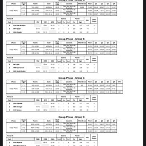 Voici le récapitulatif de tous les matchs
