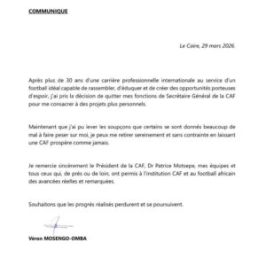 Véron Mosengo-Omba a annoncé sa démission de son poste de secrétaire général de la Confédération Africaine de Football, mettant fin à plus de 30 ans de carrière dans le football international.